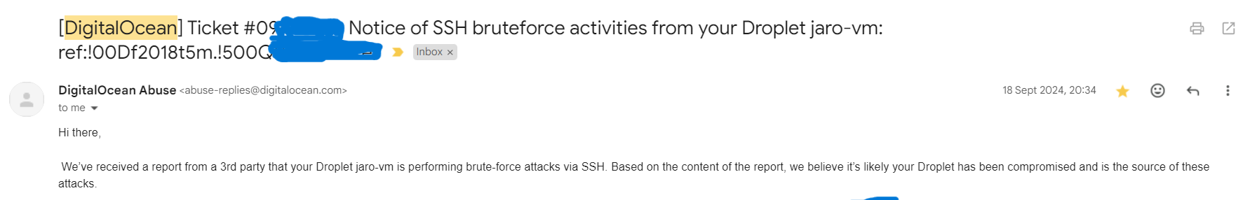 Exactly a month ago, I got an unexpected email from DigitalOcean’s Abuse team. It said my VM had been flagged for attempting SSH brute-force attacks on other servers. My first reaction? “Wait, what? My server’s out there causing trouble?”